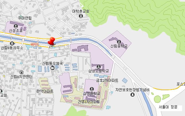 -.¼¿ï´ëÇб³ Á¤¹®¿¡¼ ½Å¸²µ¿ ¹æ¸éÀ¸·Î °¡´Â ±æ¿¡, ¼¿ï»ê¾÷Á¤º¸Çб³ Áö³ª Çѳ²±³(»ï¼º±³¿Í ȶû±³ »çÀÌ) °Ç³ÊÆí¿¡ ÀÖ½À´Ï´Ù.